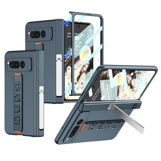 Magnetic Folding All-inclusive Leather Wristband Case With Tempered Film For Google Pixel Fold With Damped Folding Bracket