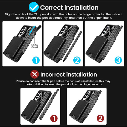 Magnetic Fold Hinge Funda Case For Samsung Galaxy Z Fold 3 5G with Pen Holder S Pen Slot