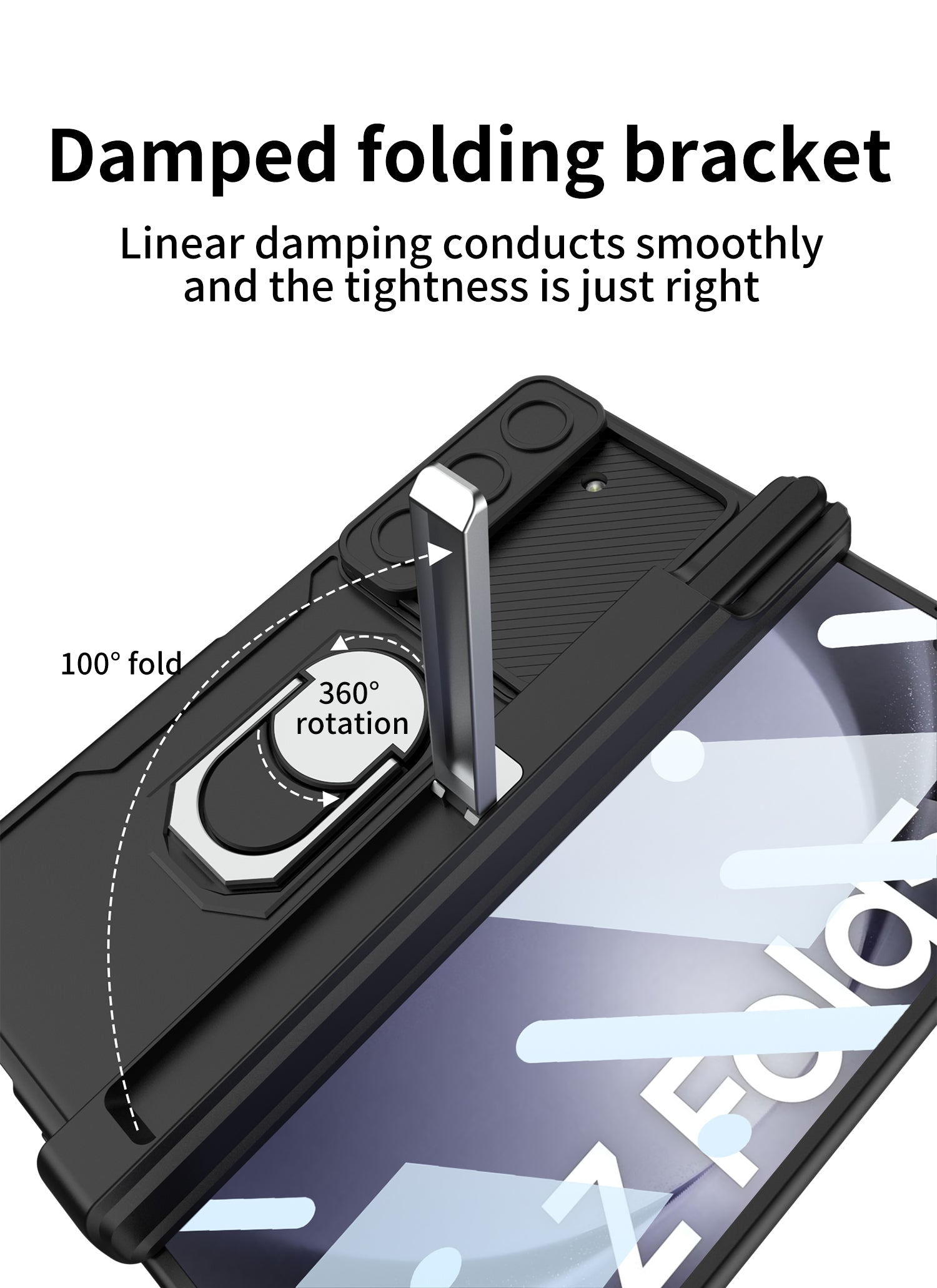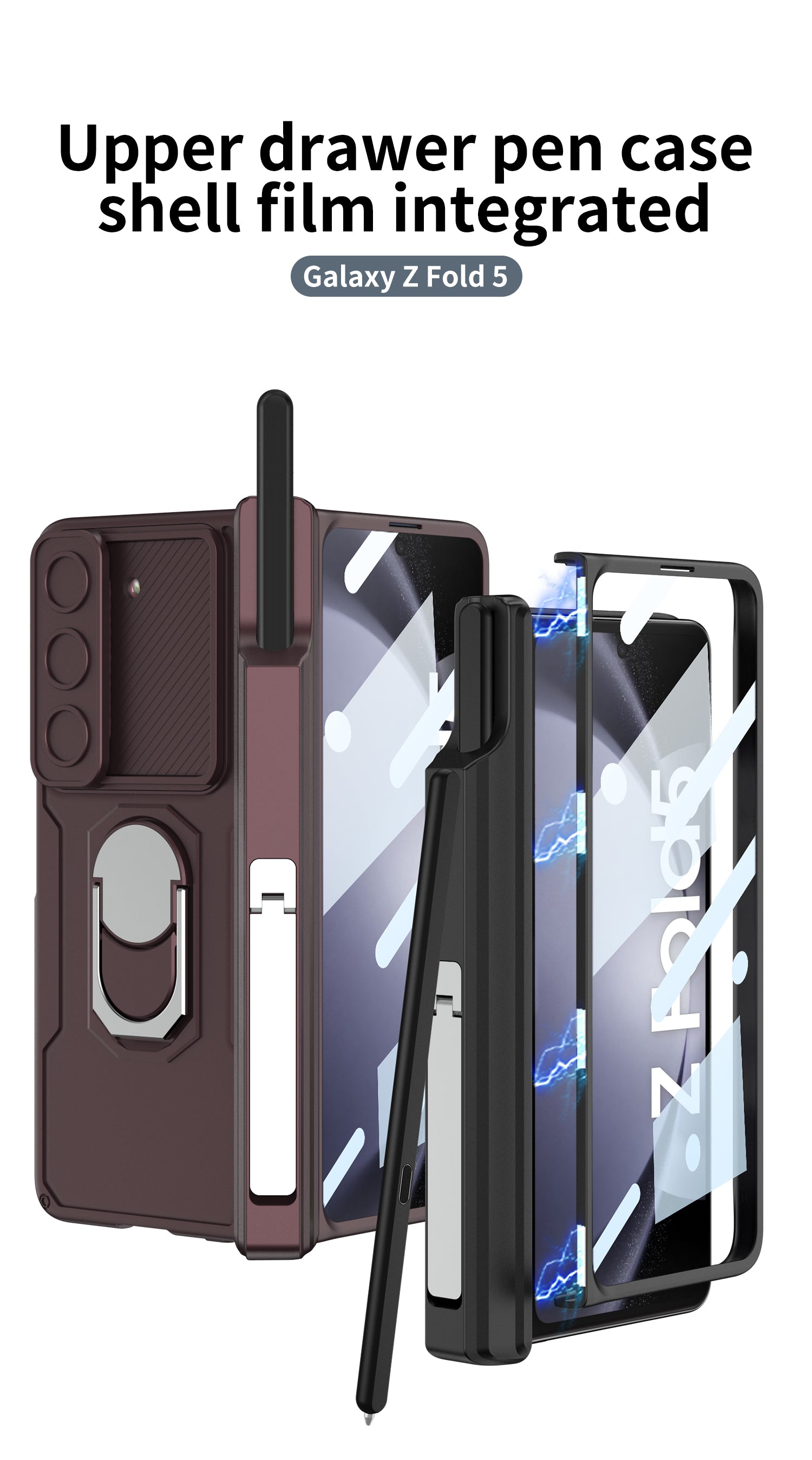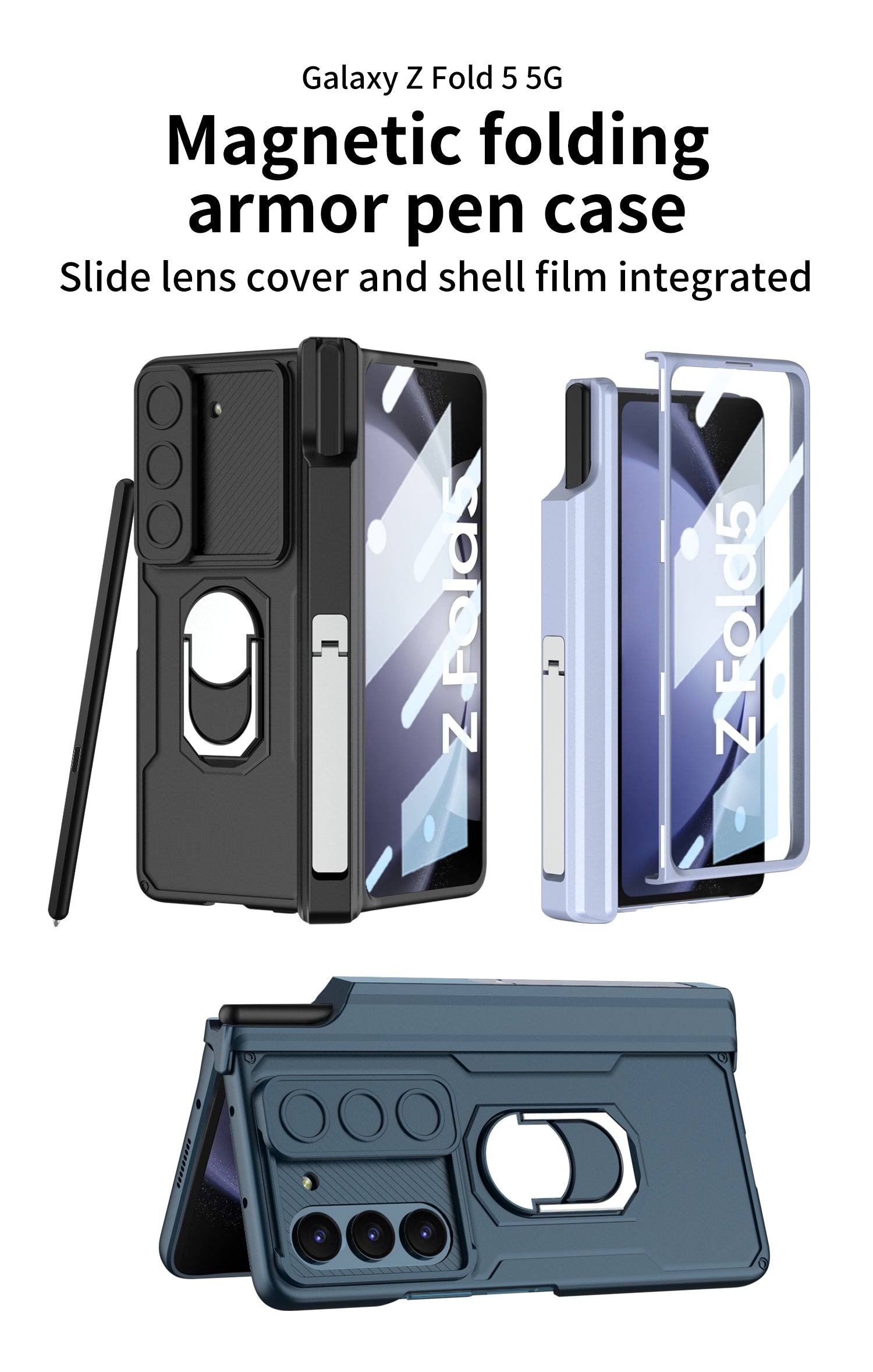 Magnetic Folding Armor Pen Case Slide Lens Cover Film Integrated Case For Samsung Galaxy Z Fold5