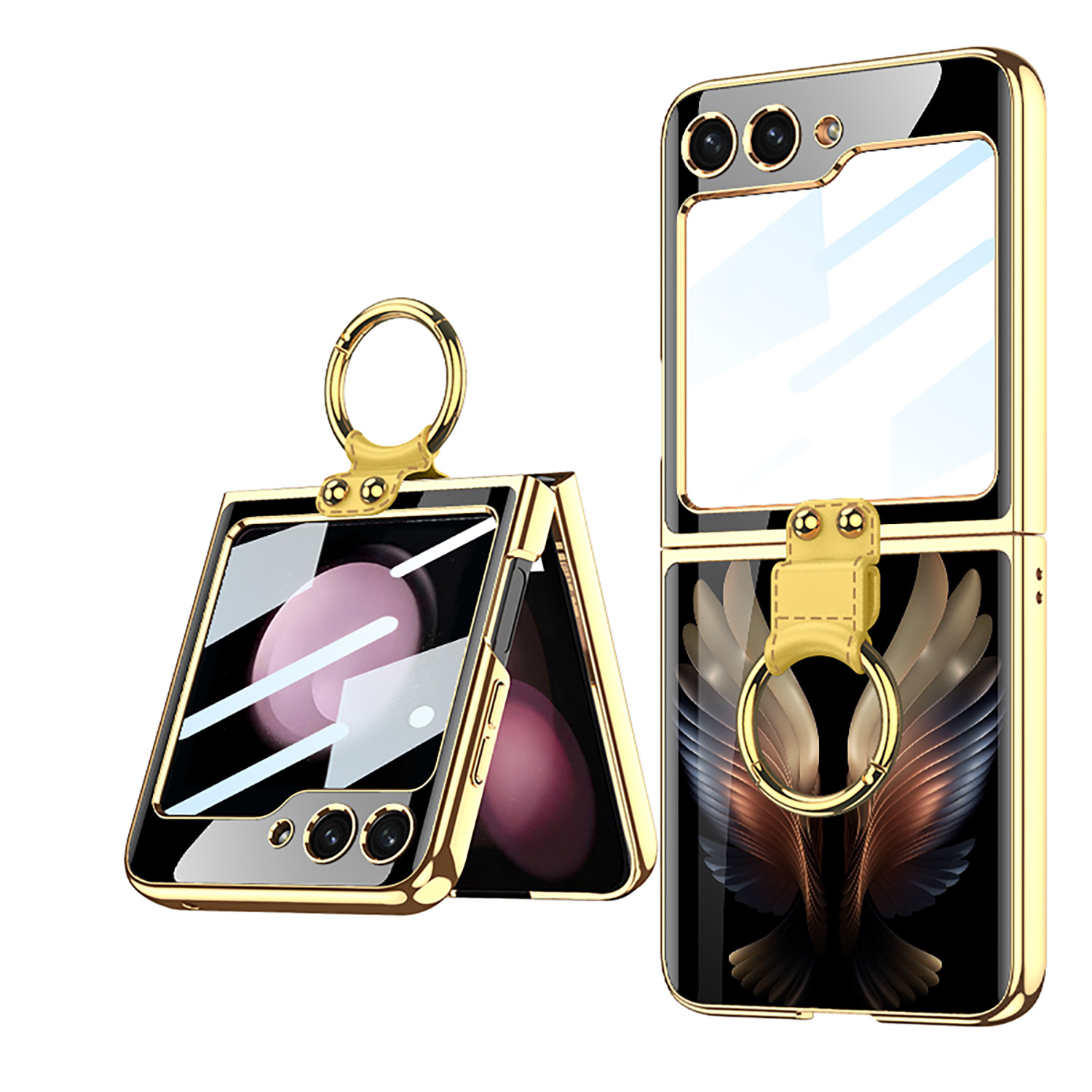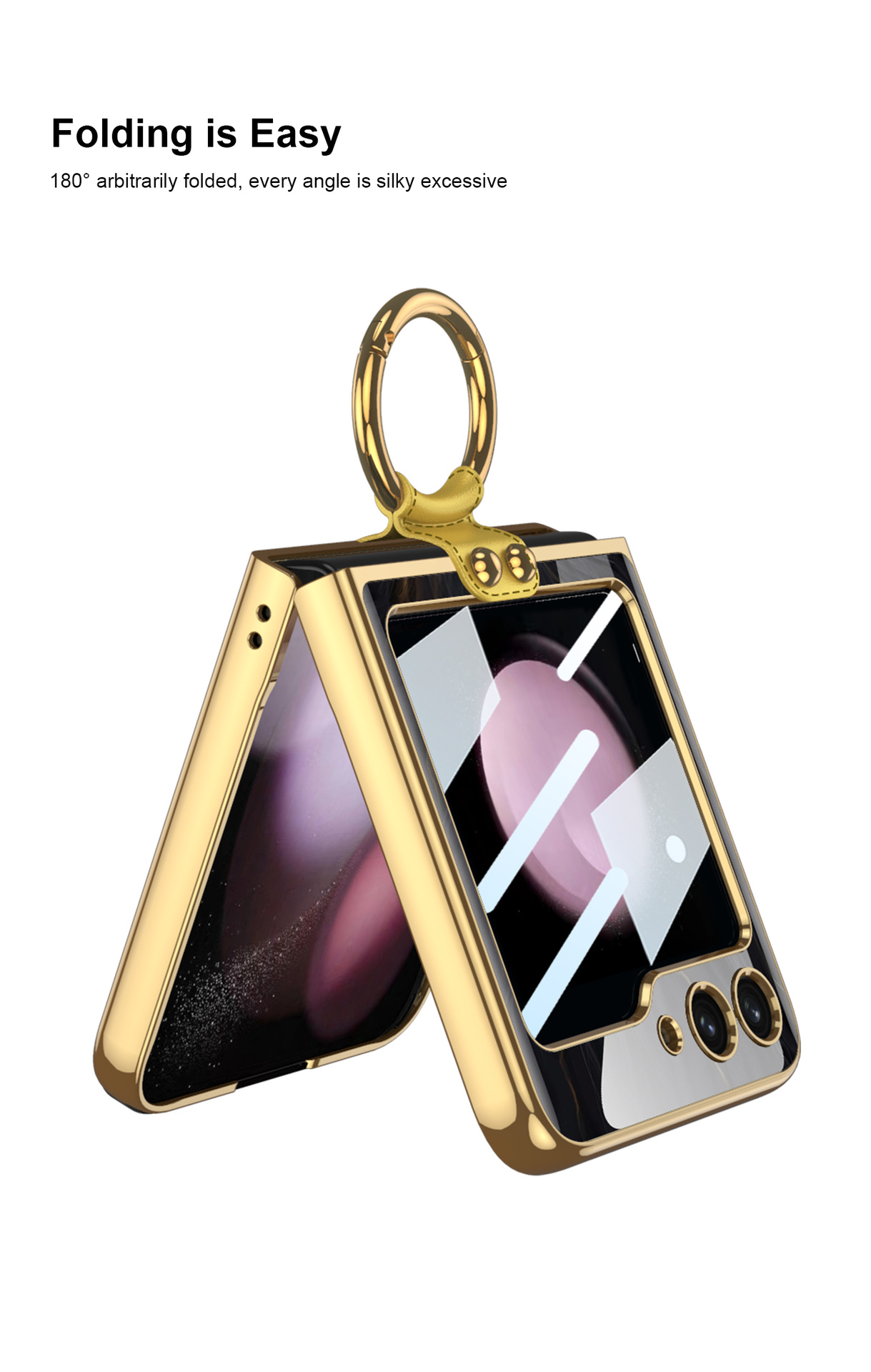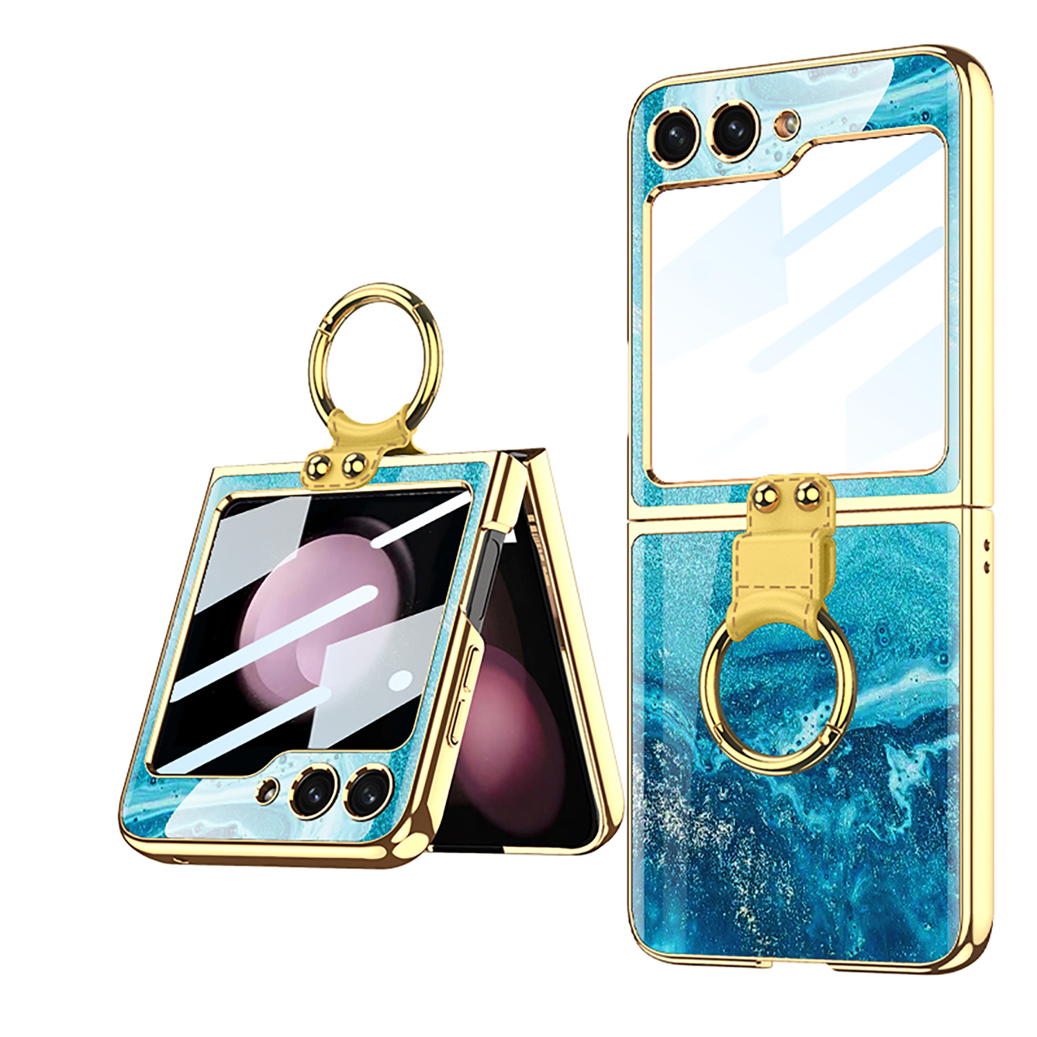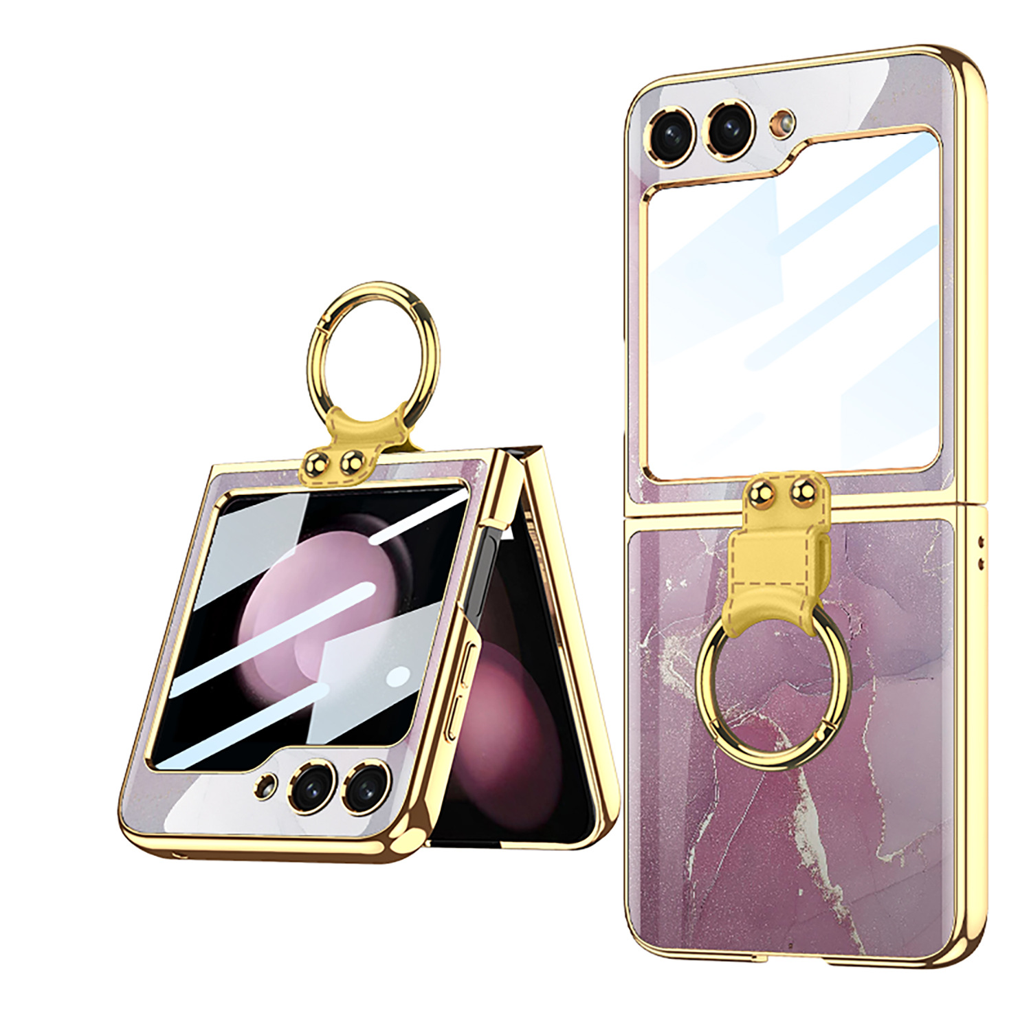 Samsung Z Flip5 Electroplating Painted Phone Case with Ring Screen Protector