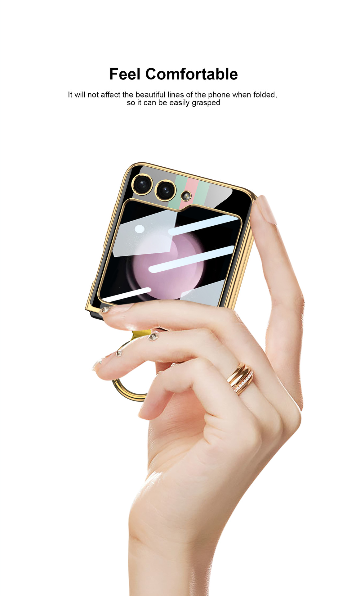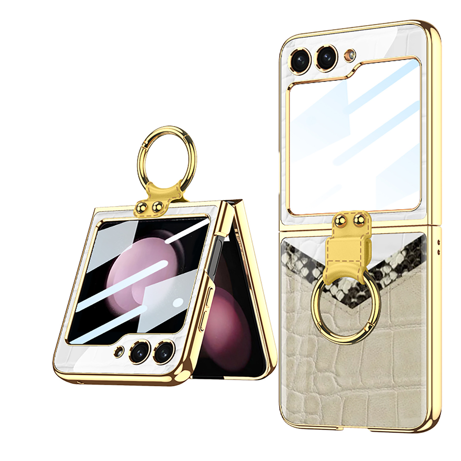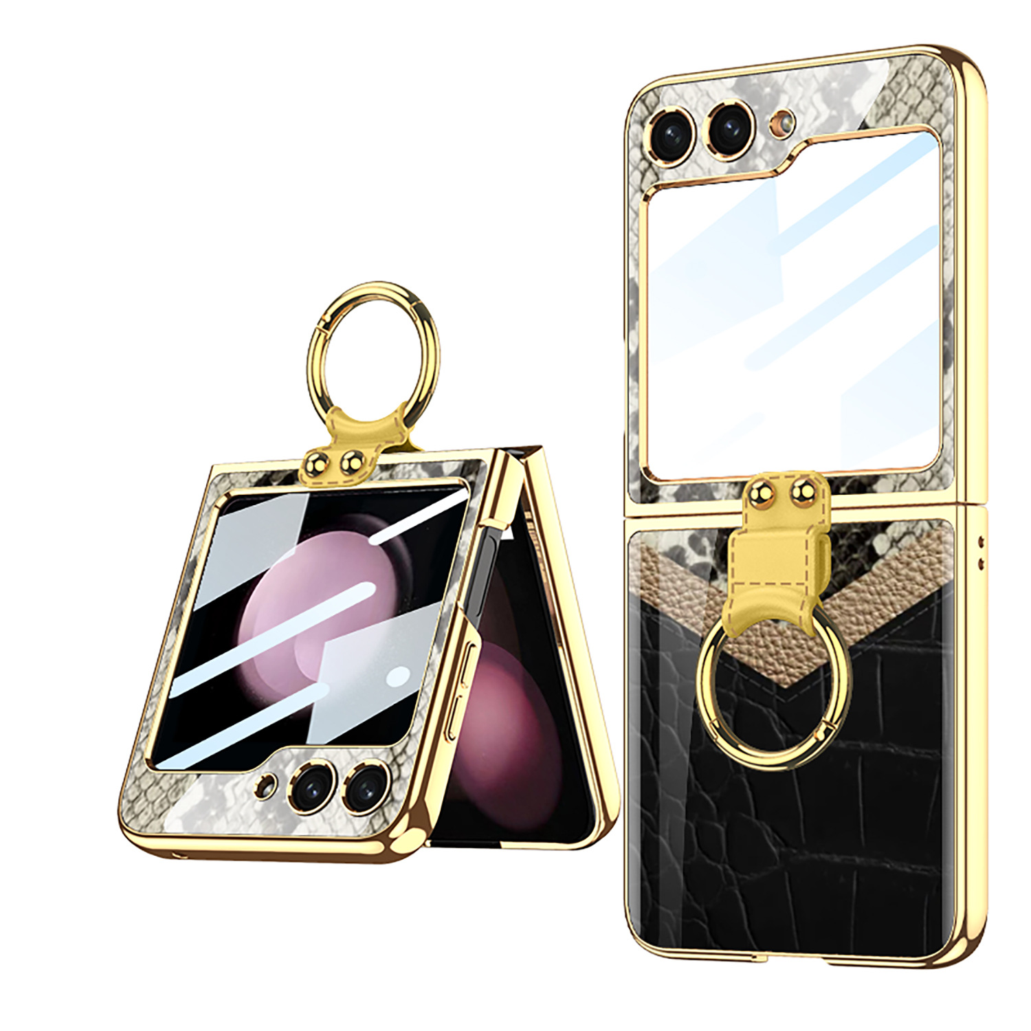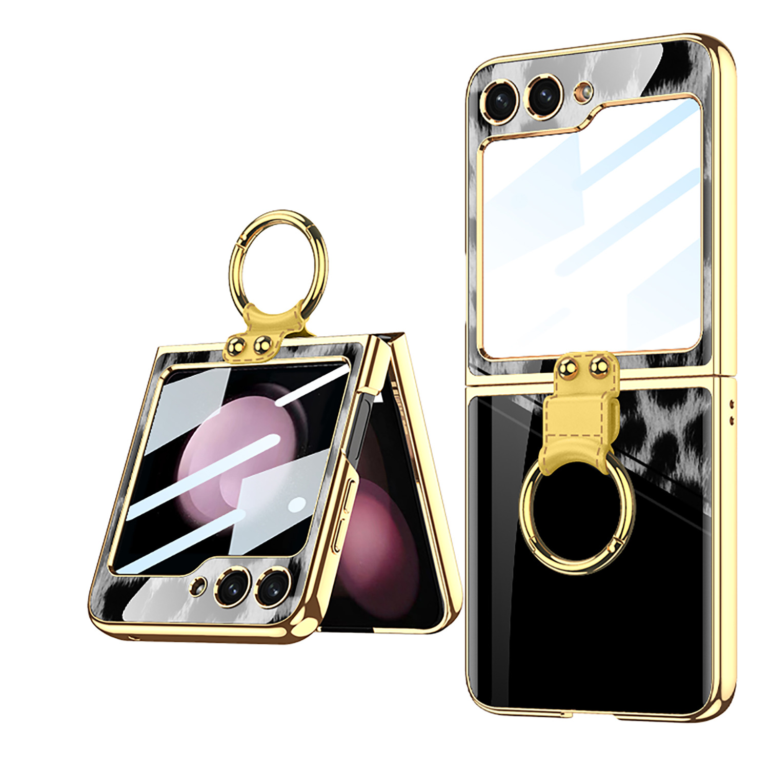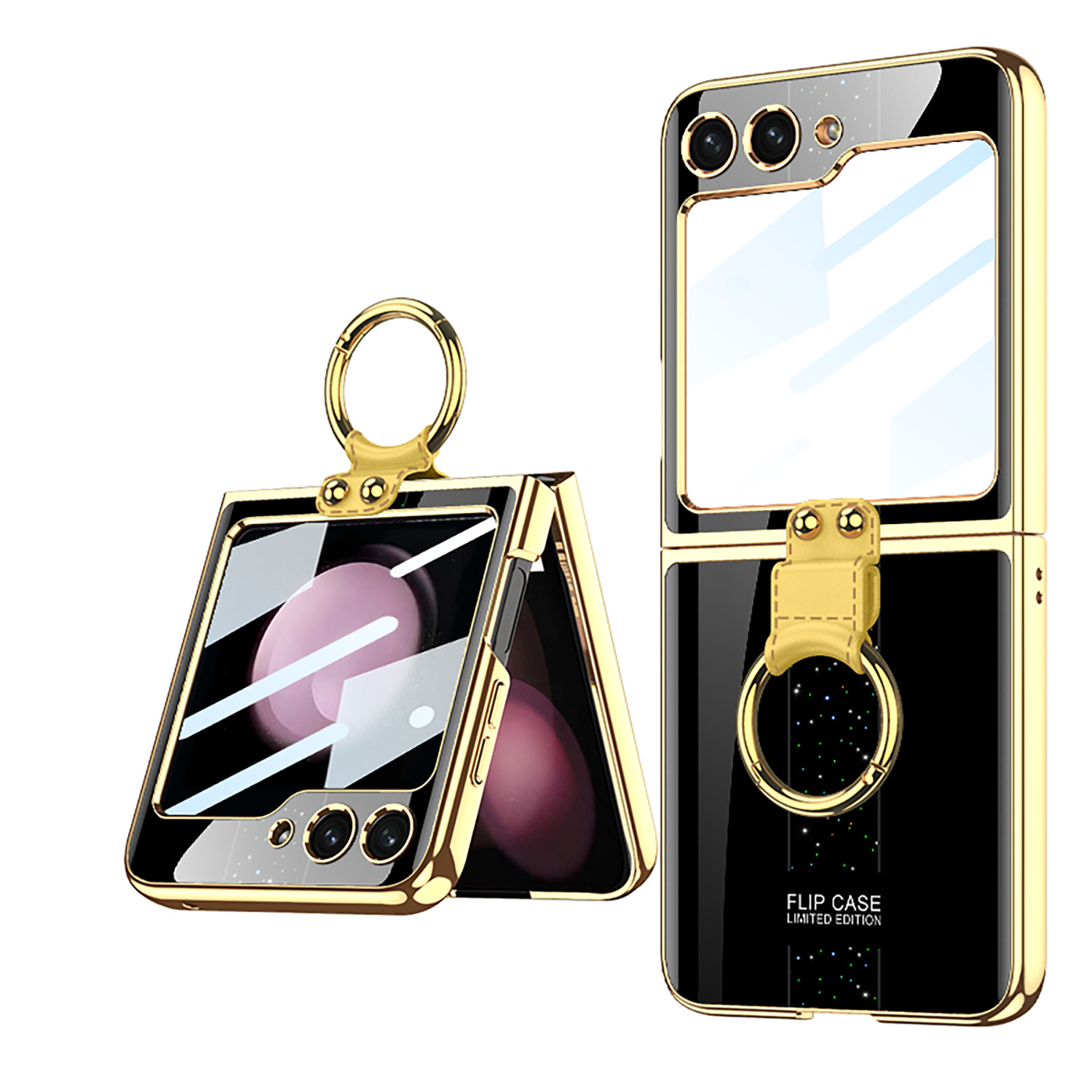 Samsung Z Flip5 Electroplating Painted Phone Case with Ring Screen Protector