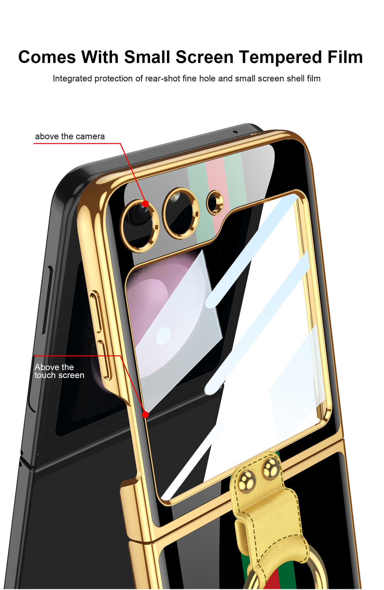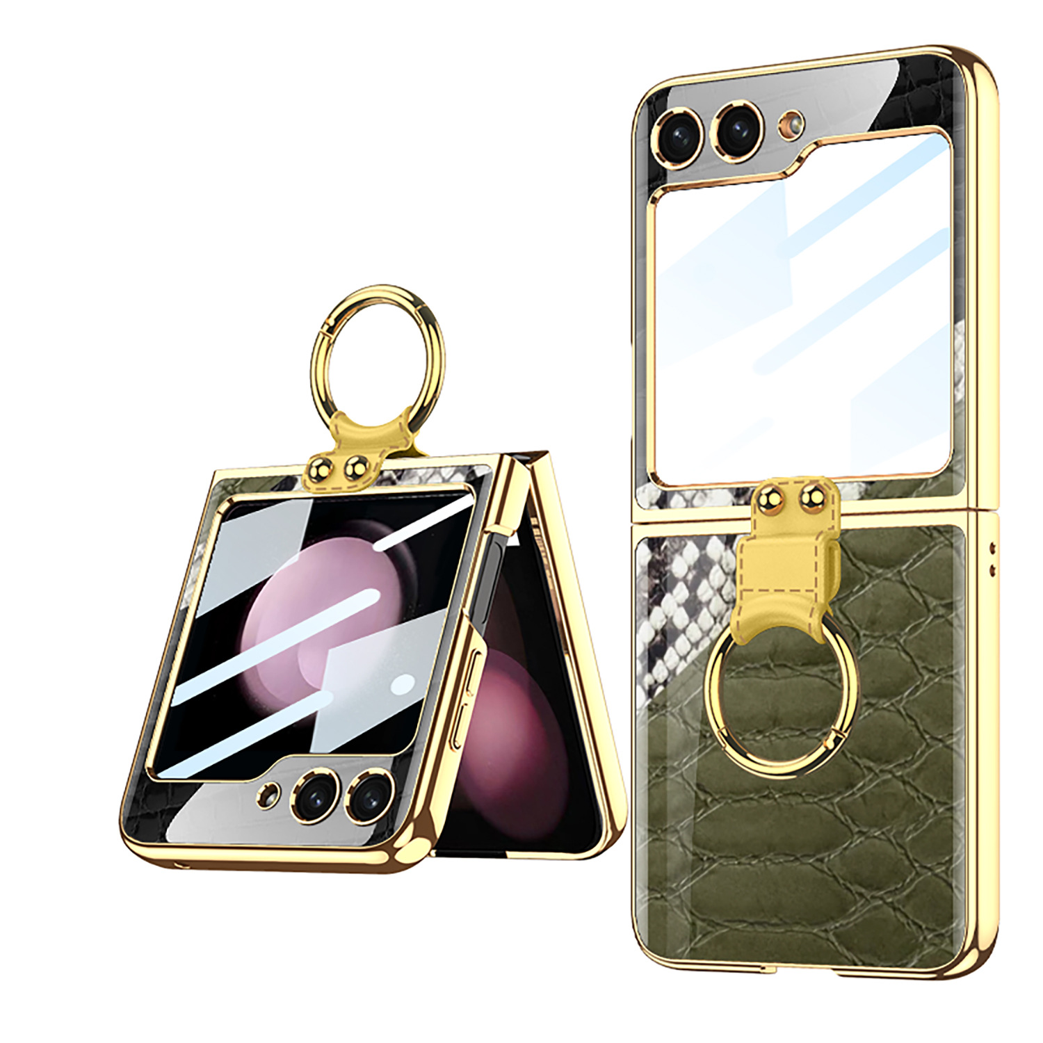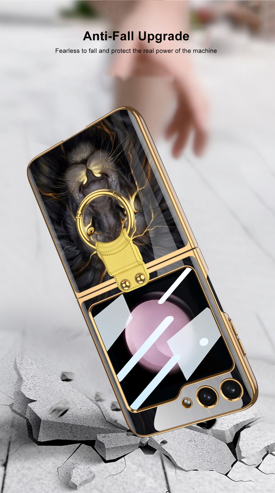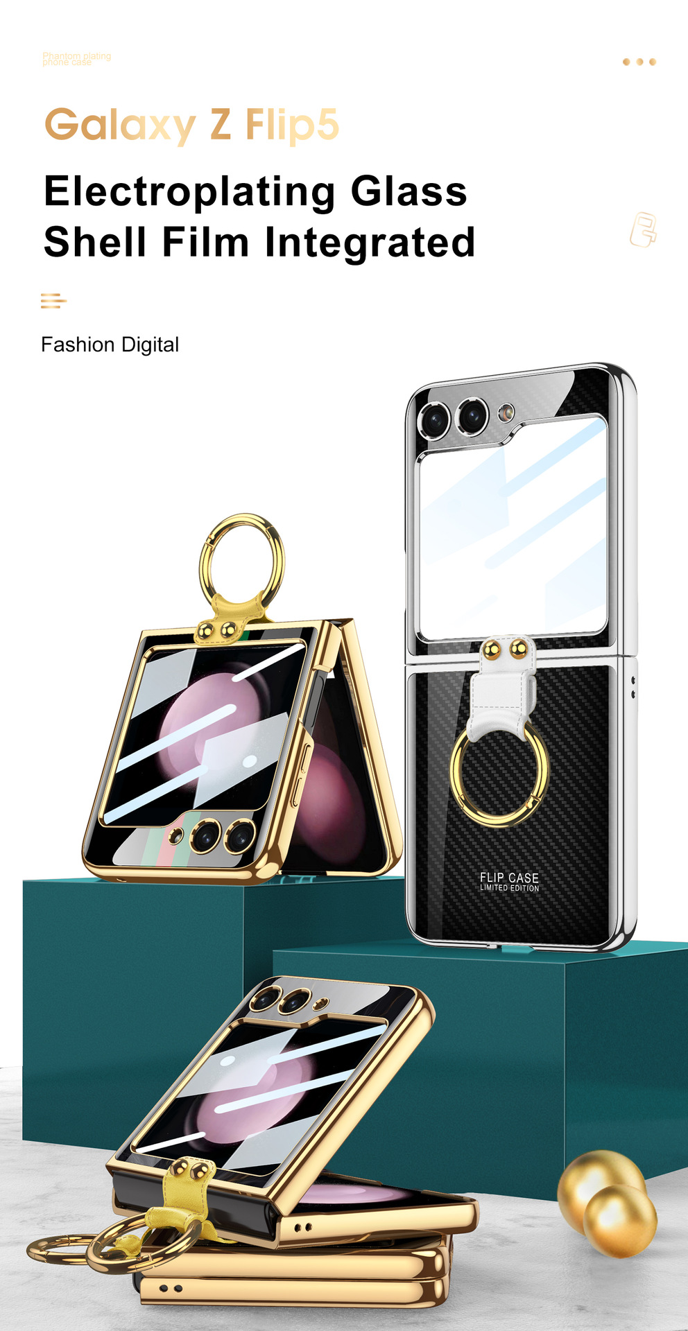 Samsung Z Flip5 Electroplating Painted Phone Case with Ring Screen Protector