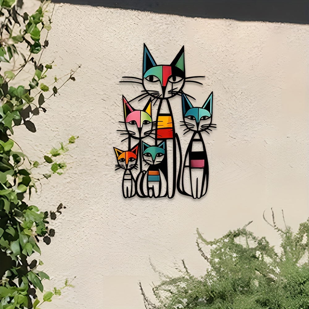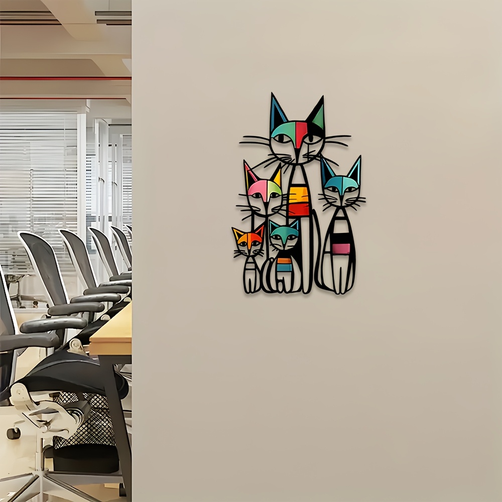 2D Flat CATS Metal Wall Art, Geometric Cat Bedroom Wall Art, Animal Metal Wall Art,