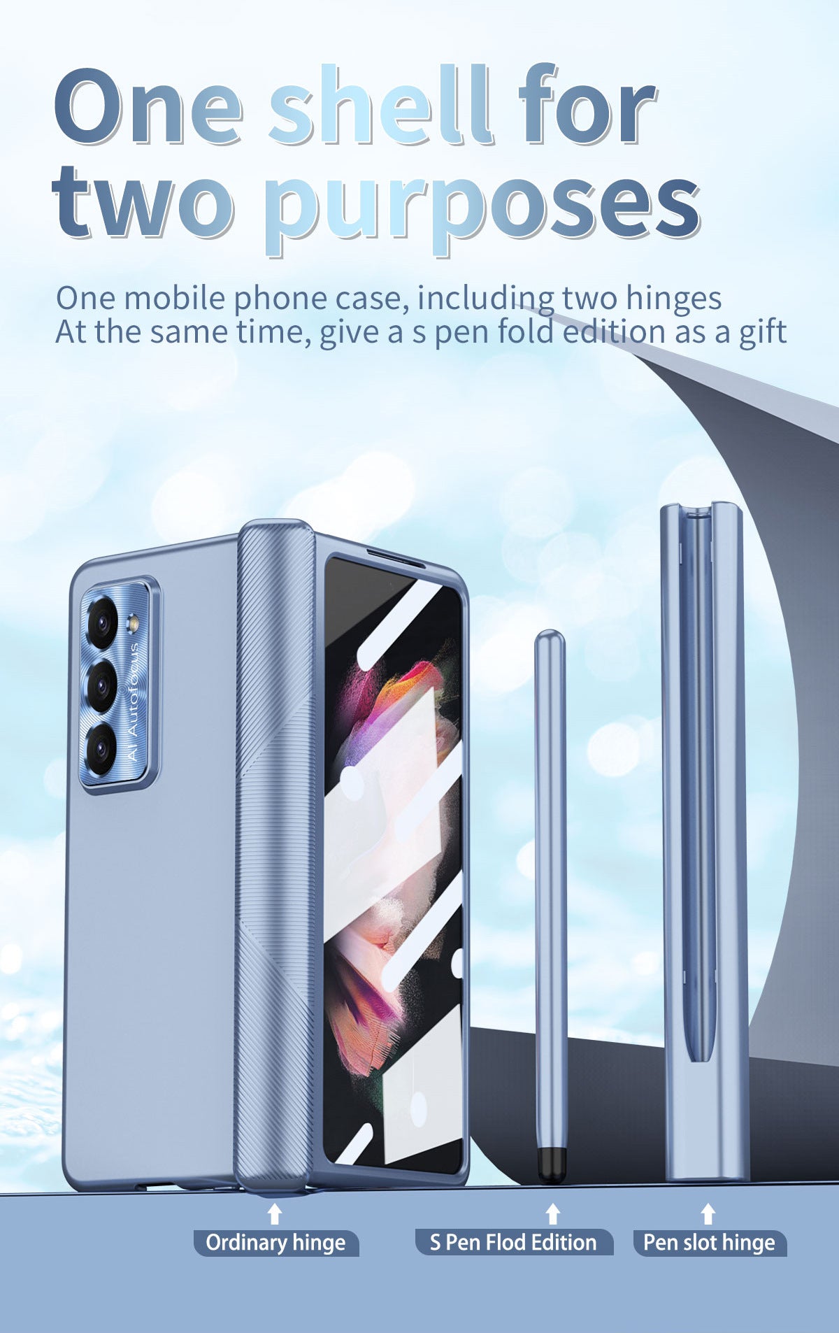 Electroplated Folding Case For Galaxy Z Fold5 With Double Hinge Protector and free Stylus