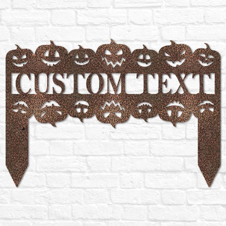 Get into the spirit of Halloween with this Jack-O-Lantern Yard Name Sign! This festive metal sign features a carved pumpkin faces with a custom name below, making it a standout decoration for your front yard, garden, or walkway. Designed to bring spooky charm to your outdoor space, this sign sets the perfect tone for trick-or-treaters, Halloween parties, and fall gatherings.