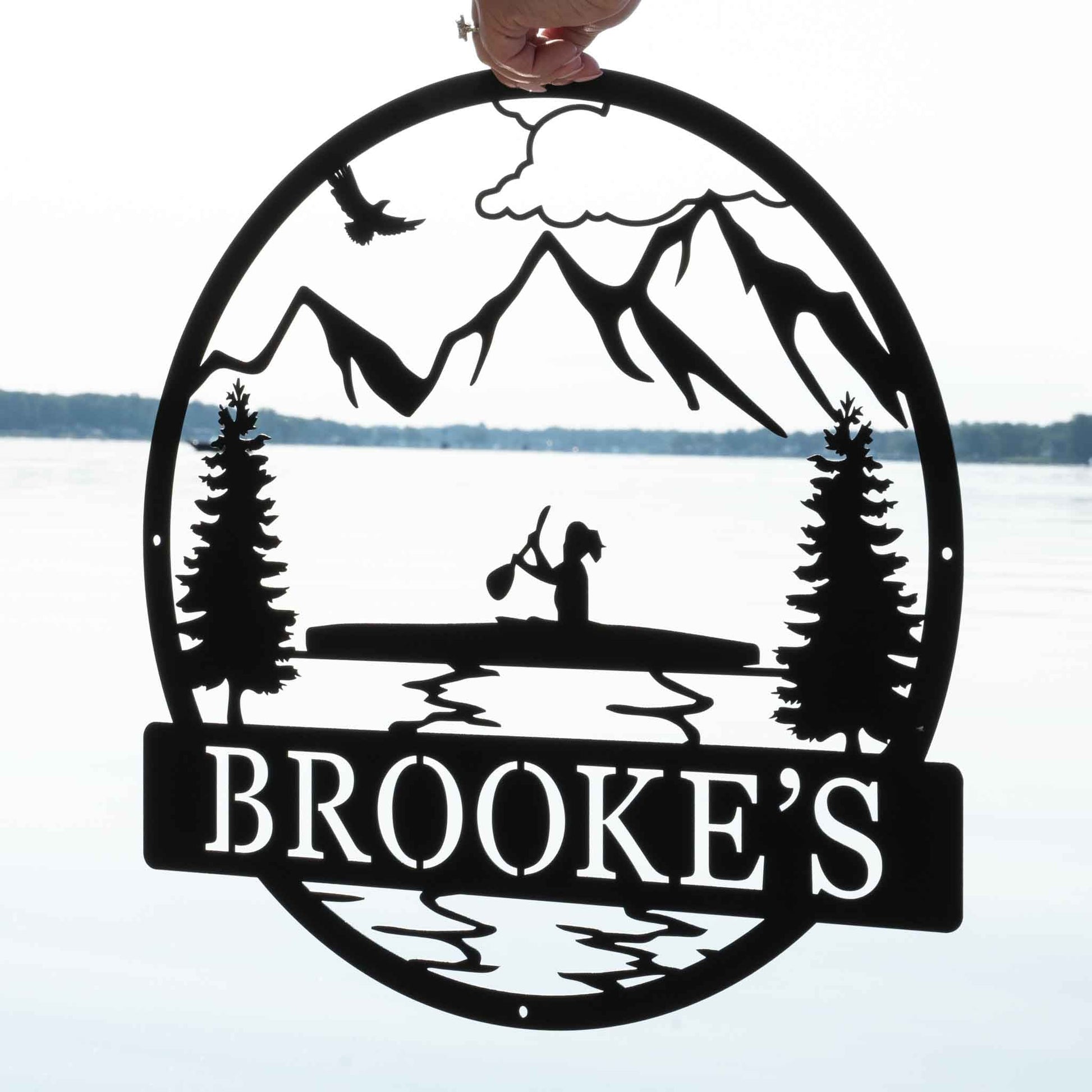 Celebrate the spirit of adventure with the Kayak Circle Name Sign, a stunning custom metal sign perfect for paddlers and nature lovers! Featuring a kayaker gliding through water in a scenic nature setting, this sign offers a choice of a male or female kayaker, as well as two background options: mountains or clouds. Whether you're decorating a lake house, river cabin, or outdoor retreat, this personalized sign adds a rugged, adventurous charm to any space.