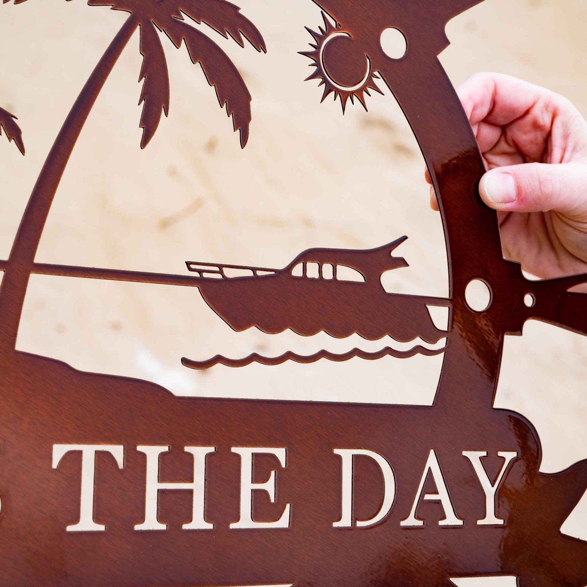 The Yacht Wheel Name Sign is the perfect addition to any nautical-themed space. Crafted from heavy duty, premium quality steel, this sign features a detailed yacht wheel design with two options: a full wheel or a wheel with a boat scene. Custom text can be added, making it a personalized piece that reflects your maritime style. Whether displayed at a beach house, on a boat dock, or in your living room, this sign brings the spirit of the sea right to your home.