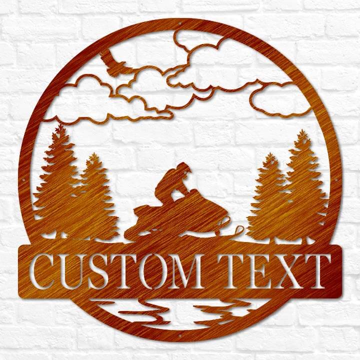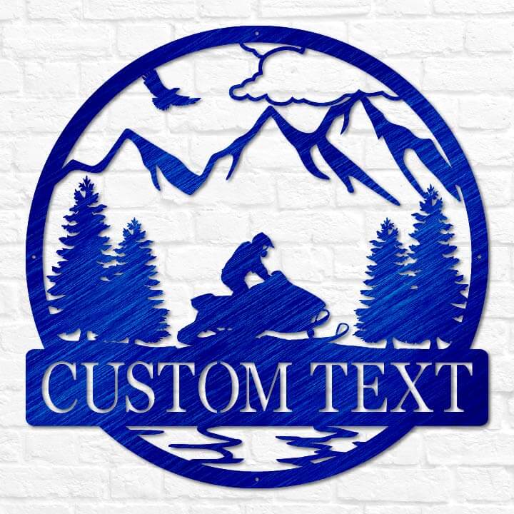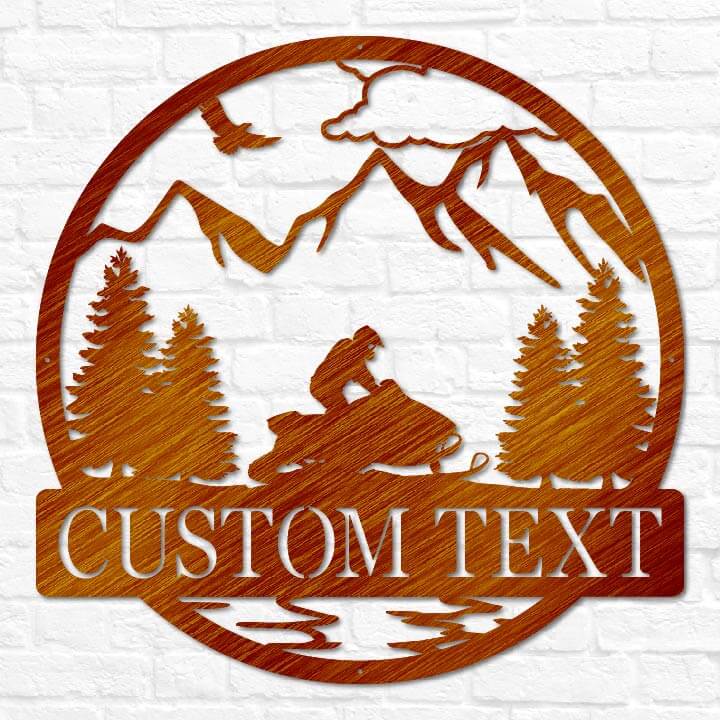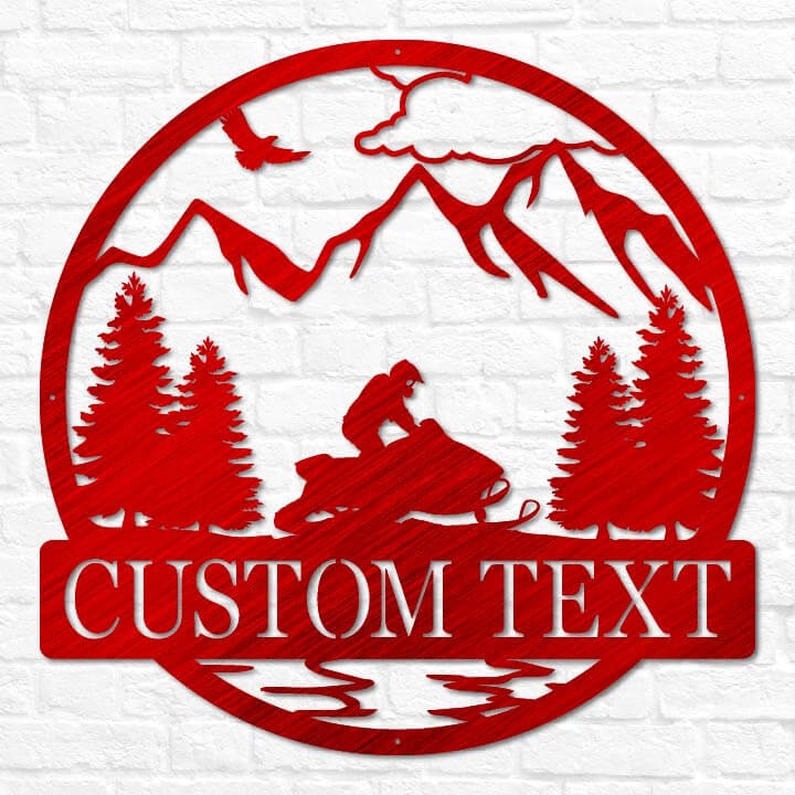Hit the trails in style with our Personalized Snowmobile Name Sign, crafted from heavy-duty, premium quality steel. Featuring a dynamic snowmobile rider speeding through the snow, this custom sign can be personalized with your name and choice of two stunning backgrounds: Mountains or Clouds. Whether mounted on your cabin, garage, or outdoor space, this sign adds a rugged and adventurous touch to any setting. Available in a variety of sizes and weather-resistant finish colors including matte black, matte copper vein, translucent red, translucent blue, and translucent copper.