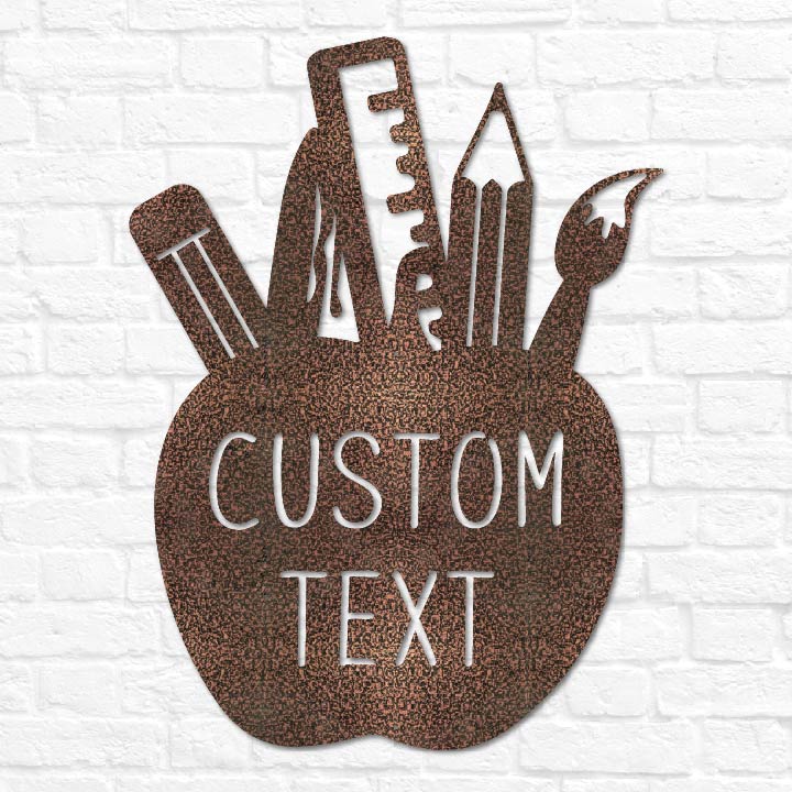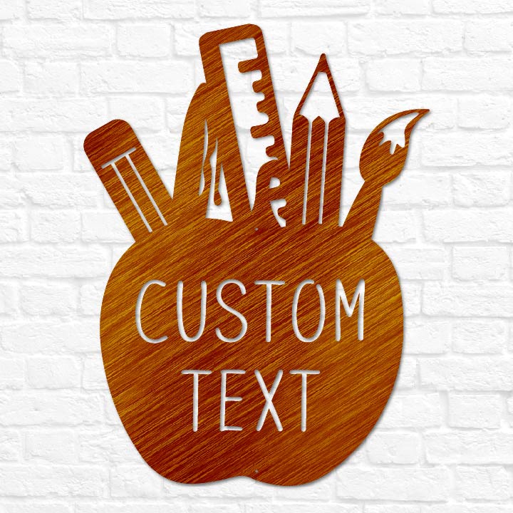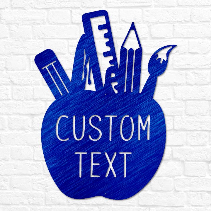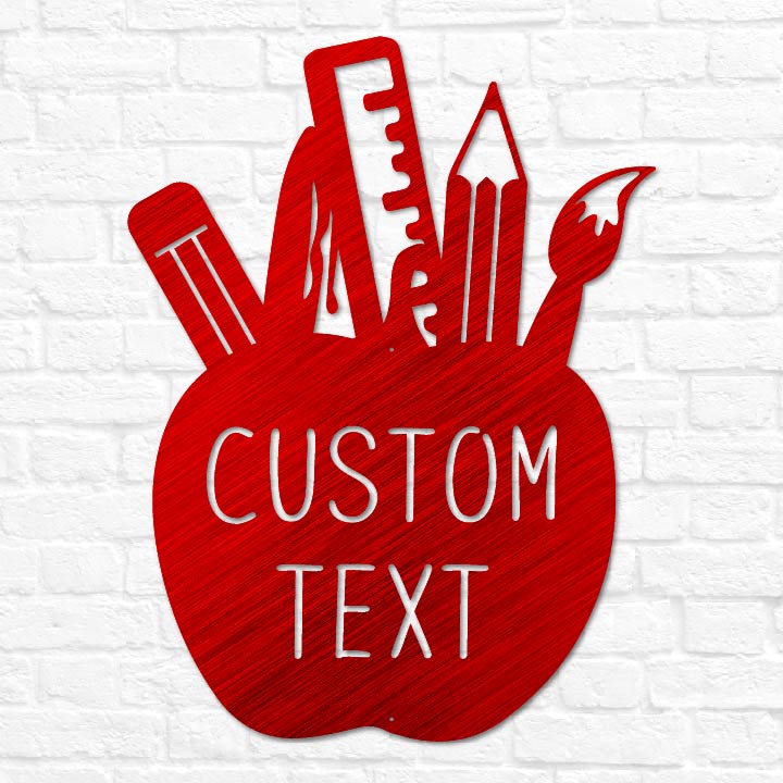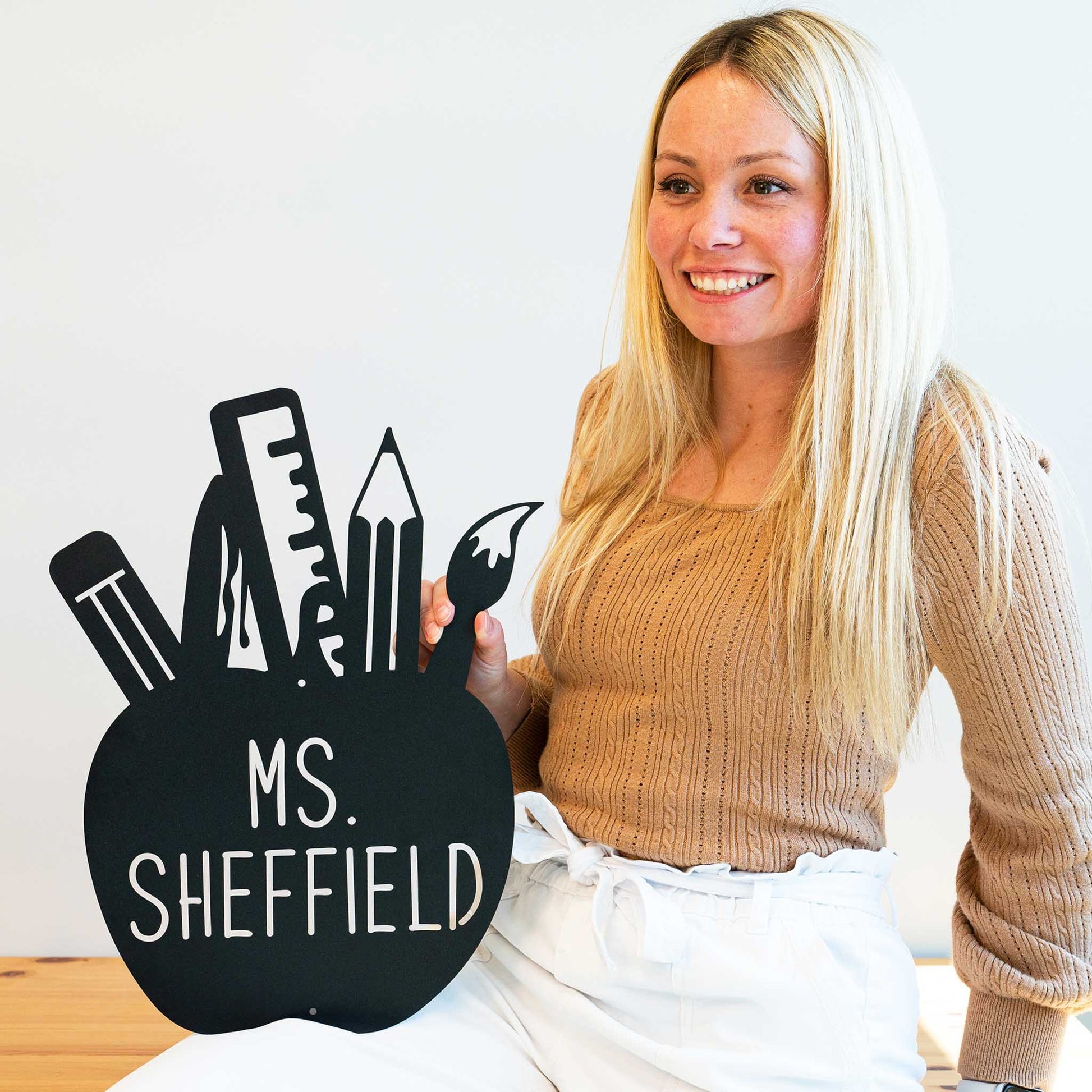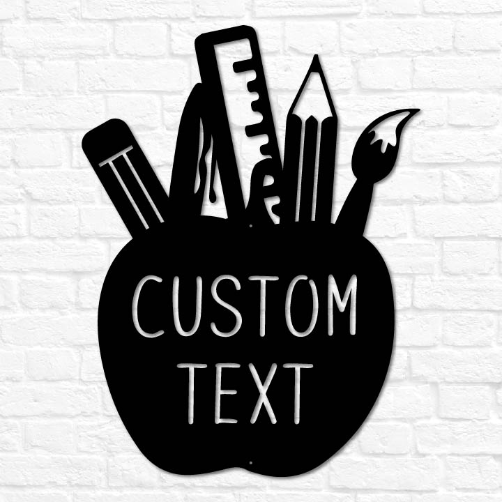 The Teacher's Cup Name Sign is a creative and functional tribute to the educators who inspire us. Crafted from heavy duty, premium quality steel, this unique apple-shaped cup sign features classroom supplies, making it an ideal decoration for any teacher’s space. With the added personalization option, it becomes a special and thoughtful gift for teachers, adding a personal touch to their workspace.